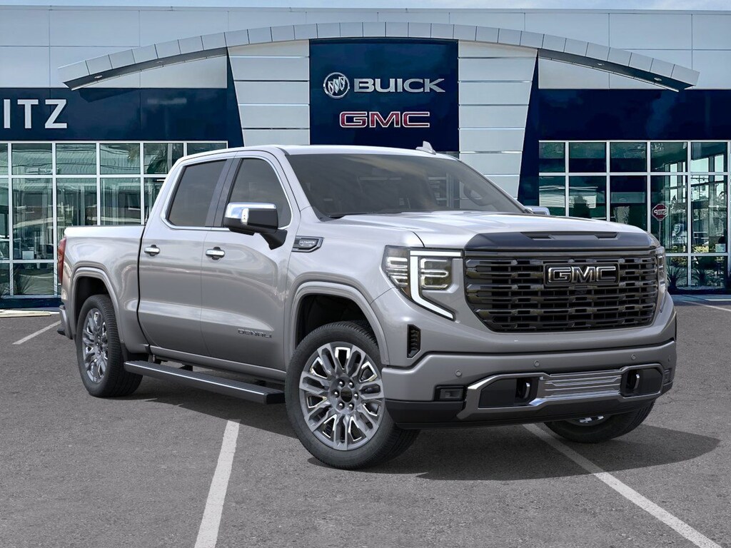 Sterling Metallic 2026 GMC Sierra 1500 Denali Ultimate 4WD 10-Speed Automatic EcoTec3 6.2L V8 10-Speed Automatic, 4WD, Alpine Umber Leather.