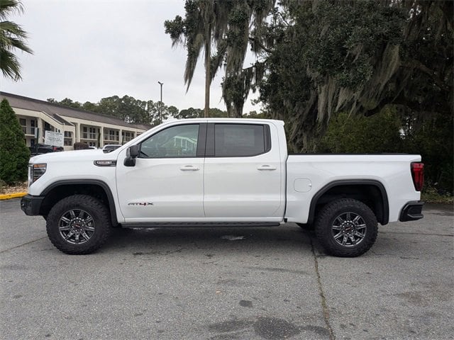 Summit White 2026 GMC Sierra 1500 AT4X 4WD 10-Speed Automatic EcoTec3 6.2L V8 10-Speed Automatic, 4WD, Obsidian Rush Leather.