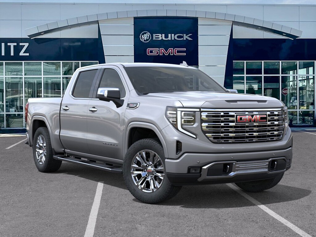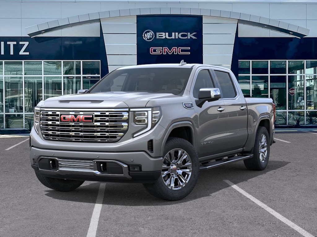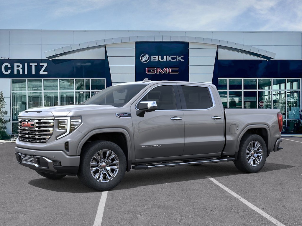 Sterling Metallic 2026 GMC Sierra 1500 Denali 4WD 10-Speed Automatic EcoTec3 6.2L V8 10-Speed Automatic, 4WD, Atmosphere/Brownstone Leather.