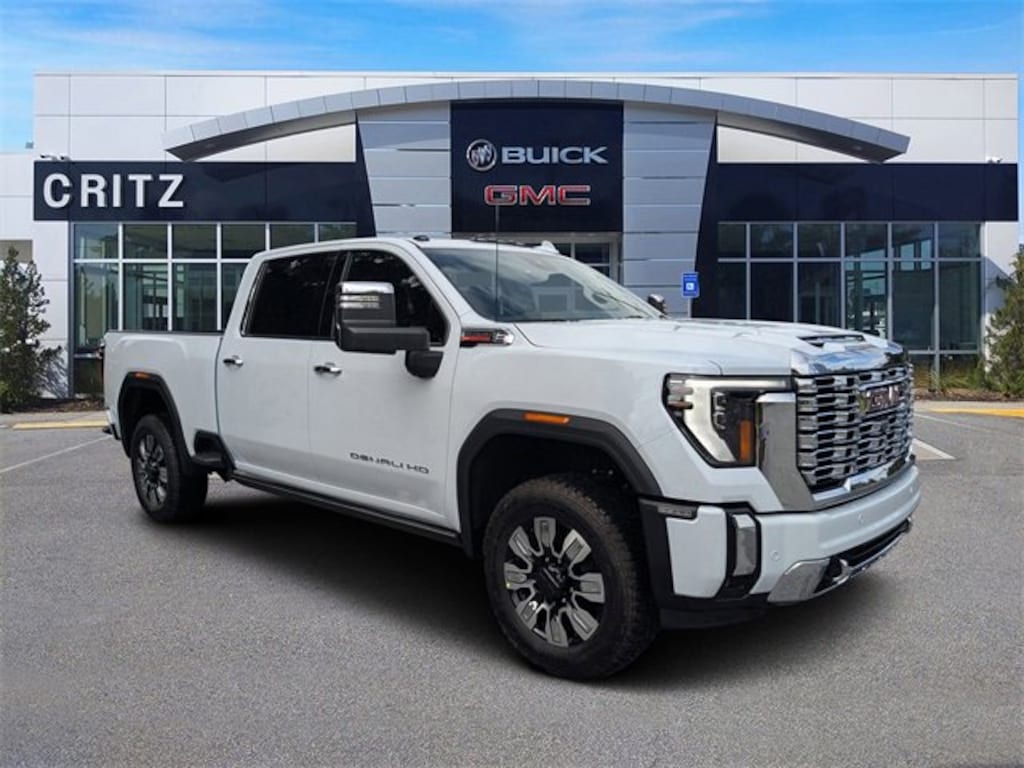 Glacier White Tricoat 2026 GMC Sierra 2500HD Denali 4WD 10-Speed Automatic Duramax 6.6L V8 Turbodiesel 10-Speed Automatic, 4WD, Atmosphere/Brownstone Leather.