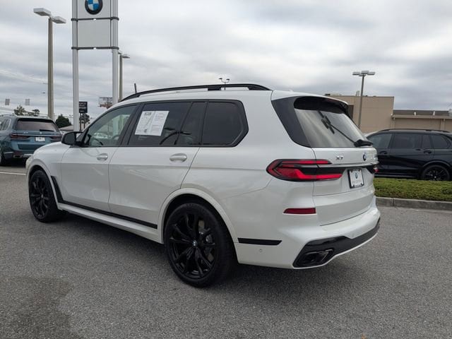 Clean CARFAX. CARFAX One-Owner. Certified. Mineral White Metallic 2025 BMW X7 M60i AWD 8-Speed Automatic Sport 4.4L V8 DOHC 32V APPLE CAR PLAY, ANDROID AUTO, USB PORTS, BLUETOOTH, 5-Zone Automatic Climate Control, Alloy wheels, Apple CarPlay and Android Auto Compatibility, Climate Comfort Package, Connected Package Pro, Executive Package, Extended Shadowline Trim, Front and Rear Heated Seats, Front Massaging Seats, Front Ventilated Seats, Glass Controls, Heated and Cooled Cup Holders, Increased Top Speed Limiter, M Sport Brakes with Black Calipers, M Sport Package Pro, M Sport Professional Package, Navigation system: BMW Maps Navigation, Panoramic Sky Lounge LED Roof, Wheels: 22 x 9.5 Front and 22 x 10.5 Rear V-Spoke.SHOP WITH CONFIDENCE Additional plans are available to extend coverage, if desired, Every vehicle is thoroughly inspected and reconditioned by BMW-Certified technicians, 1-Year/Unlimited Miles plus balance of original new vehicle limited warranty (4-Year/50,000-miles), Roadside Assistance includes jump starts, tire changes, lock out service, and fuel/fluid delivery, 24/7 Roadside Assistance (even if someone else is driving your vehicle)BMW Certified Pre-Owned Details:* Transferable Warranty* Multipoint Point Inspection* Warranty Deductible: $0* Vehicle History* Limited Warranty: 12 Month/Unlimited Mile* 1 year/Unlimited miles beginning after new car warranty expires. 6-yrs Roadside Assistance. SiriusXM Satellite Radio 3-mos free. Every BMW Certified Plug-in Hybrid comes with an 8-Year/100,000-Mile Battery Guarantee. The Initial Battery Transfers to the New Owner.* Roadside Assistance