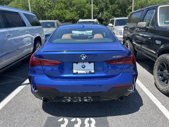 Clean CARFAX. CARFAX One-Owner. Recent Arrival! Certified. Portimao Blue Metallic 2026 BMW 4 Series 430i RWD 8-Speed Automatic Sport 2.0L 4-Cylinder TwinPower Turbo APPLE CAR PLAY, ANDROID AUTO, USB PORTS, BLUETOOTH, Alloy wheels, Black Mirror Caps, Connected Package Pro Limited Term, Extended Shadowline Trim, Full LED Headlights with Laserlight Taillights, Harman/Kardon Surround Sound System, Heated Steering Wheel, Live Cockpit Pro with Navigation, M Shadowline Lights, M Sport Package, M Sport Package Pro, Navigation, Navigation System, Power Tailgate, Premium Package, Remote Engine Start, Shadowline Package, Wheels: 19 x 8 M Dual-Spoke Bicolor.SHOP WITH CONFIDENCE Additional plans are available to extend coverage, if desired, Every vehicle is thoroughly inspected and reconditioned by BMW-Certified technicians, 1-Year/Unlimited Miles plus balance of original new vehicle limited warranty (4-Year/50,000-miles), Roadside Assistance includes jump starts, tire changes, lock out service, and fuel/fluid delivery, 24/7 Roadside Assistance (even if someone else is driving your vehicle) Odometer is 698 miles below market average! 28/36 City/Highway MPGBMW Certified Pre-Owned Details:* 1 year/Unlimited miles beginning after new car warranty expires. 6-yrs Roadside Assistance. SiriusXM Satellite Radio 3-mos free. Every BMW Certified Plug-in Hybrid comes with an 8-Year/100,000-Mile Battery Guarantee. The Initial Battery Transfers to the New Owner.* Roadside Assistance* Multipoint Point Inspection* Warranty Deductible: $0* Limited Warranty: 12 Month/Unlimited Mile* Vehicle History* Transferable Warranty