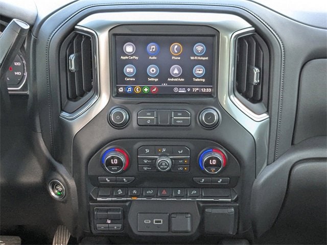 Clean CARFAX. CARFAX One-Owner. Black 2021 Chevrolet Silverado 1500 LT Trail Boss 4WD 10-Speed Automatic EcoTec3 5.3L V8 APPLE CAR PLAY, ANDROID AUTO, USB PORTS, BLUETOOTH, 10-Speed Automatic, 4WD, Jet Black w/Perforated Leather Seat Trim, 10-Way Power Driver Seat w/Lumbar, 12-Volt Rear Auxiliary Power Outlet, 120-Volt Instrument Panel Power Outlet, 170 Amp Alternator, 2 USB Ports, 2 USB Ports (First Row), 4.2 Diagonal Color Display Driver Info Center, 6-Speaker Audio System, All-Weather Floor Liner (LPO) (AAK), Auto-Locking Rear Differential, Auxiliary External Transmission Oil Cooler, Bluetooth® For Phone, Cloth Rear Seat w/Storage Package, Color-Keyed Carpeting Floor Covering, Compass, Convenience Package II, Convenience Package w/Buckets Seats, Deep-Tinted Glass, Dual Exhaust w/Polished Outlets, Dual-Zone Automatic Climate Control, Electric Rear-Window Defogger, Electrical Lock Control Steering Column, Electronic Cruise Control, EZ Lift Power Lock & Release Tailgate, Floor Mounted Center Console, Front LED Fog Lamps, HD Radio, HD Rear Vision Camera, Heated Driver & Front Outboard Passenger Seats, Heated Steering Wheel, High Gloss Black Grille, High Gloss Black Mirror Caps, Keyless Open & Start, Leather Package, Leather Wrapped Steering Wheel, Leather-Appointed Front Seat Trim, LED Cargo Area Lighting, LED Reflector Headlamps, Manual Tilt/Telescoping Steering Column, Navigation System, OnStar & Chevrolet Connected Services Capable, Performance Red Recovery Hooks, Power Door Locks, Power Front Windows w/Driver Express Up/Down, Power Front Windows w/Passenger Express Down, Power Rear Windows w/Express Down, Power Sliding Rear Window w/Rear Defogger, Preferred Equipment Group 2LT, Premium Bose 7-Speaker Sound System, Radio: Chevrolet Infotainment 3 Plus System, Rear Dual USB Charging-Only Ports, Rear Vision Camera, Remote Vehicle Starter System, SiriusXM Radio, SiriusXM w/360L, Standard Tailgate, Steering Wheel Audio Controls, Suspension Package, Theft Deterrent System (Unauthorized Entry), Trailering Package, Universal Home Remote, Up-Level Rear Seat w/Storage Package, Wireless Phone Projection.