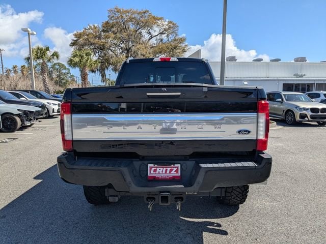 CARFAX One-Owner. Shadow Black 2017 Ford F-250SD Platinum 4WD TorqShift 6-Speed Automatic Power Stroke 6.7L V8 DI 32V OHV Turbodiesel 4WD, 20 Polished Aluminum Wheels, Adaptive Cruise Control & Collision Warning, Alloy wheels, Colored Front & Rear Rancho Branded Shocks, Electronic-Locking w/3.55 Axle Ratio, FX4 Off-Road Package, GVWR: 10,000 lb Payload Package, Hill Descent Control, Lane-Keeping Alert, Navigation System, Order Code 703A, Platinum Ultimate Package, Power door mirrors, Twin Panel Power Moonroof, Ultimate Trailer Tow Camera System, Unique FX4 Off-Road Box Decal.VISIT US TODAY Critz Auto Group has been serving the Greater Savannah Area and Coastal Empire for over 75 years. We are your local Mercedes-Benz and Mercedes-Benz Sprinter Vans, BMW, Buick, GMC and GMC Trucks dealership for new, used and certified pre-owned vehicles.Reviews:* Power Stroke turbodiesel V8 generates immense power and torque; stronger frame and suspension enable increased payload and tow ratings; aluminum body reduces overall weight and improves efficiency; spacious new cabs offer many convenience and technology options. Source: EdmundsAwards:* 2017 KBB.com Brand Image Awards * 2017 KBB.com 10 Most Awarded Brands