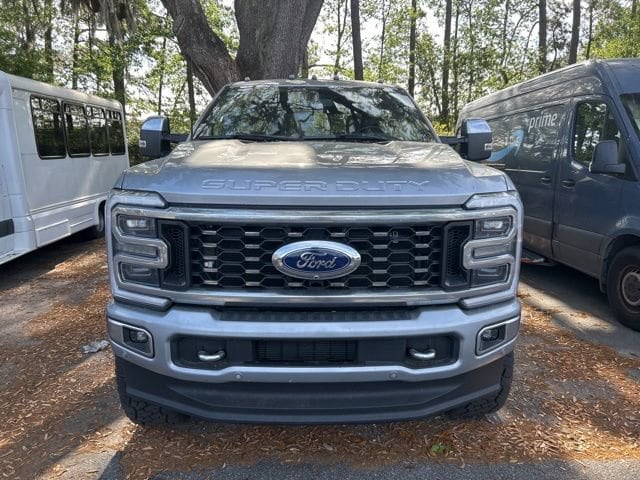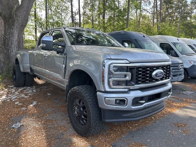 CARFAX One-Owner. Recent Arrival! Silver Metallic 2024 Ford F-350SD Platinum DRW DRW 4WD 10-Speed Automatic 6.7L High Output Power Stroke V8 Diesel APPLE CAR PLAY, ANDROID AUTO, USB PORTS, BLUETOOTH, New Feature, Lift, American Force Wheels, 37 inch tires, 4WD, 360-Degree Camera Package, 360-Degree Camera System, 5th Wheel/Gooseneck Hitch Prep Package, Active Cruise Control, Alloy wheels, BLIS w/Cross-Traffic Alert, FX4 Off-Road Package, Gooseneck Hitch Kit (Pre-Installed), GVWR: 14,000 lb Payload Package, Hill Descent Control, LED Center High-Mounted Stop Lamp (CHMSL) Camera, Limited Slip w/4.10 Axle Ratio, Max Recline Seats, Navigation system: Connected Navigation (includes complimentary 1-year trial), Off-Road Specifically Tuned Shock Absorbers, Order Code 723A, Radio: B&O Unleashed Sound System by Bang & Olufsen, Rear Parking Sensors, SiriusXM Radio w/360L, SYNC 4 w/Enhanced Voice Recognition, Twin Panel Power Moonroof, Unique FX4 Off-Road Box Decal.