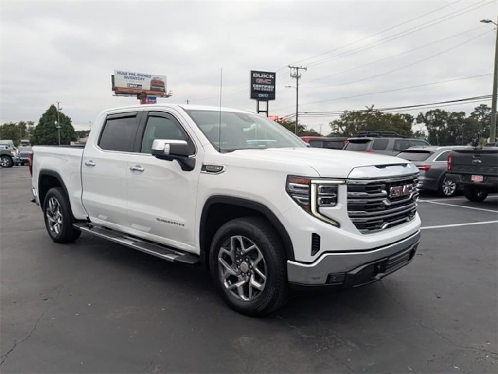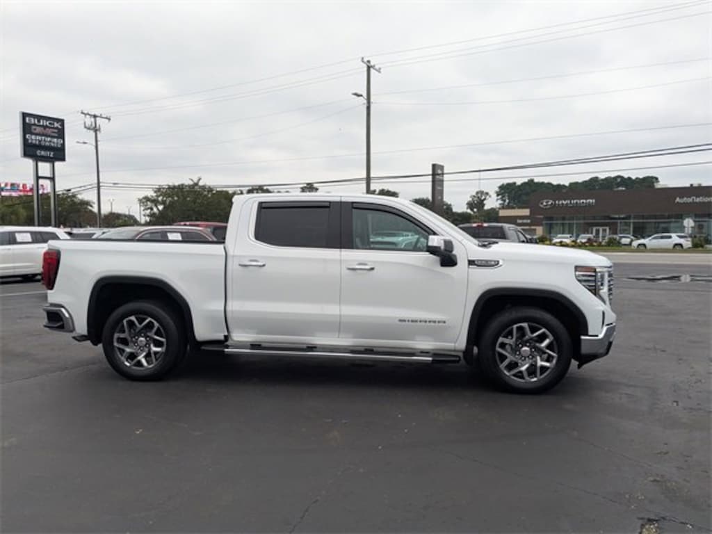 Clean CARFAX. CARFAX One-Owner. Summit White 2022 GMC Sierra 1500 SLT RWD 10-Speed Automatic EcoTec3 5.3L V8 APPLE CAR PLAY, ANDROID AUTO, USB PORTS, BLUETOOTH, 10-Speed Automatic, Jet Black Leather, 120-Volt Instrument Panel Power Outlet, 170 Amp Alternator, 2 Charge/Data USB Ports, 2 Type-C Charge-Only Rear USB Ports, 20 Polished Aluminum Wheels, 6-Speaker Audio System Feature, Auto-Locking Rear Differential, Auxiliary External Transmission Oil Cooler, Chrome Header & Chrome Grille Insert Bars, Chrome Wheel To Wheel Assist Steps, Color-Keyed Carpeting Floor Covering, Compass, Deep-Tinted Glass, Electric Rear-Window Defogger, Electrical Steering Column Lock, Floor-Mounted Center Console, Front Bucket Seats, Front Frame-Mounted Black Recovery Hooks, Front Rainsensing Wipers, GMC Connected Access Capable, HD Rear Vision Camera, Heated Steering Wheel, High Capacity Suspension Package, Hitch Guidance w/Hitch View, In-Vehicle Trailering App, Integrated Trailer Brake Controller, Keyless Open & Start, LED Cargo Area Lighting, Manual Tilt-Wheel & Telescoping Steering Column, Navigation System, OnStar & GMC Connected Services Capable, Perimeter Lighting, Power Door Locks, Power Front Passenger Windows w/Express Up/Down, Power Front Windows w/Driver Express Up/Down, Power Rake & Telescoping Steering Column, Power Rear Windows w/Express Down, Preferred Equipment Group 4SA, Premium Bose 7-Speaker Sound System, ProGrade Trailering System, Push Button Start, Rear Wheelhouse Liners, Remote Vehicle Starter System, SiriusXM w/360L, SLT Convenience Package, SLT Premium Package, Standard Suspension Package, Steering Wheel Audio Controls, Theft Deterrent System (Unauthorized Entry), Trailering Package, Ventilated Driver & Front Passenger Seats, Wi-Fi Hotspot Capable, Wireless Charging, Wireless Phone Projection.SHOP WITH CONFIDENCE This vehicle is covered by the Assurant Vehicle Care 12 month or 12,000 Mile Powertrain Limited Warranty. Every vehicle passes a comprehensive inspection performed by Certified Technicians. Coverage includes Powertrain, Rental Reimbursement, Nationwide Protection, 24/7 Roadside Assistance (Towing Service, Flat Tire Assistance, Battery Service, Lock-out Assistance, Fuel/Fluid Delivery), Emergency Travel Expense Reimbursement and Tire Hazard Protection. Please ask your client representative for details. Odometer is 24491 miles below market average!