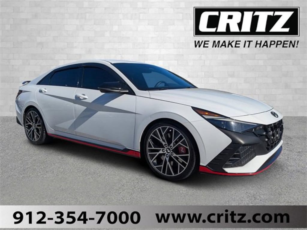 CARFAX One-Owner. Ceramic White 2022 Hyundai Elantra N Base FWD 8-speed Wet Dual-Clutch Transmission w/ Paddle Shifters 2.0L TGDI APPLE CAR PLAY, ANDROID AUTO, USB PORTS, BLUETOOTH, Cargo Hook, Cargo Side Bins, First Aid Kit, Navigation System, Power moonroof, Preferred Accessory Package.