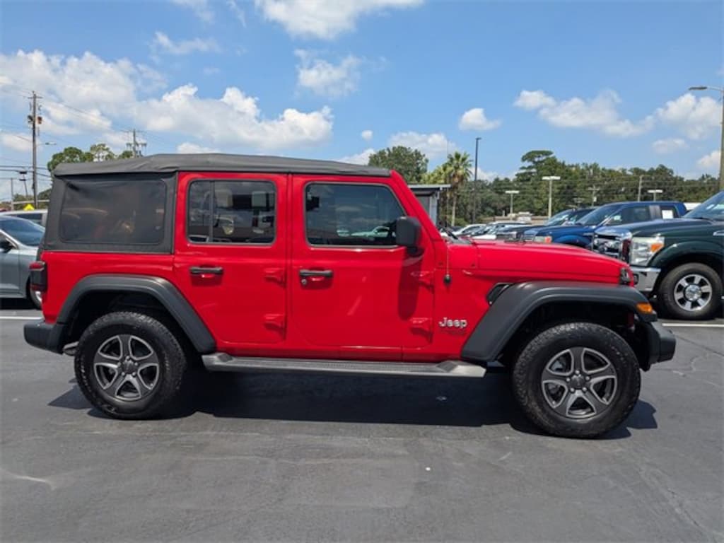 CARFAX One-Owner. Firecracker Red Clearcoat 2019 Jeep Wrangler Unlimited Sport S 4WD 8-Speed Automatic 3.6L V6 24V VVT APPLE CAR PLAY, ANDROID AUTO, USB PORTS, BLUETOOTH, 7.0 Touchscreen Display, Air Conditioning w/Auto Temperature Control, Air Filtering, Apple CarPlay, Automatic Headlamps, Blind Spot & Cross Path Detection, Cluster 7.0 TFT Color Display, Convenience Group, Deep Tint Sunscreen Windows, Front 1-Touch Down Power Windows, Google Android Auto, GPS Antenna Input, Injection Molded Black Rear Bumper, Integrated Center Stack Radio, Leather Wrapped Steering Wheel, LED Taillamps, ParkSense Rear Park Assist System, Power Heated Mirrors, Quick Order Package 24S Sport S, Radio: Uconnect 4 w/7 Display, Remote Keyless Entry, Safety Group, Security Alarm, SiriusXM Satellite Radio, Speed Sensitive Power Locks, Sun Visors w/Illuminated Vanity Mirrors, Technology Group, Universal Garage Door Opener, USB Host Flip, Wheels: 17 x 7.5 Tech Silver Aluminum.