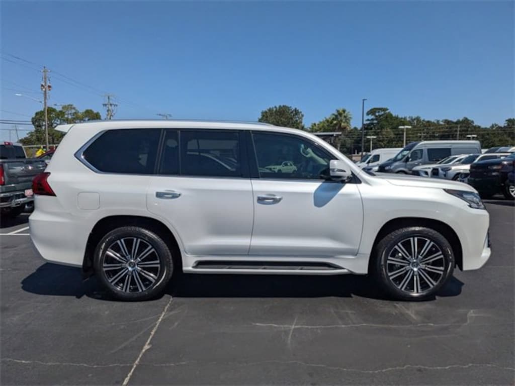 Clean CARFAX. CARFAX One-Owner. White 2021 Lexus LX 570 4WD 8-Speed Automatic with Sequential Shift 5.7L V8 DOHC Dual VVT-i 32V APPLE CAR PLAY, ANDROID AUTO, USB PORTS, BLUETOOTH, Black w/Leather Seat Trim or Semi-Aniline Leather Seat Trim, Accessory Package (Z1), Alloy Wheel Locks, Cargo Net, Carpet Cargo Mat, Front & Rear LED Courtesy Lamps w/Logo, Heated/Ventilated Front & 2nd Row Outboard Seats, Key Gloves, Luxury Package, Navigation System, Seat Air Conditioner, Semi-Aniline Leather Seat Trim, Tonneau Cover, Two Row Package.SHOP WITH CONFIDENCE This vehicle is covered by the Assurant Vehicle Care 12 month or 12,000 Mile Powertrain Limited Warranty. Every vehicle passes a comprehensive inspection performed by Certified Technicians. Coverage includes Powertrain, Rental Reimbursement, Nationwide Protection, 24/7 Roadside Assistance (Towing Service, Flat Tire Assistance, Battery Service, Lock-out Assistance, Fuel/Fluid Delivery), Emergency Travel Expense Reimbursement and Tire Hazard Protection. Please ask your client representative for details.
