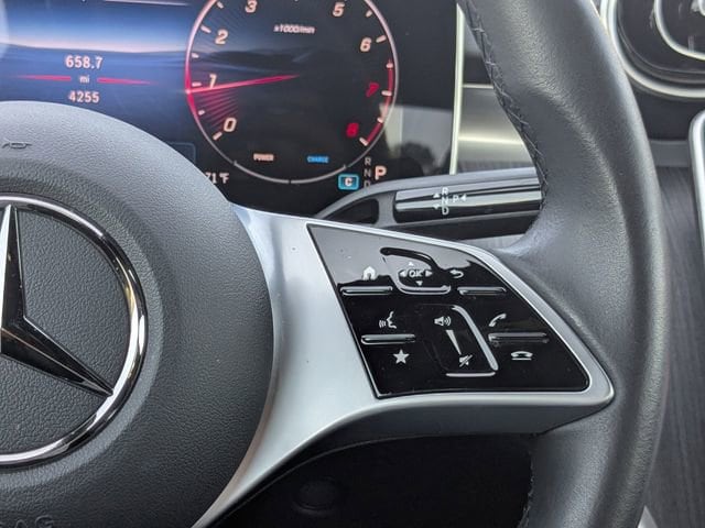 Clean CARFAX. Certified. Black 2025 Mercedes-Benz C-Class C 300 RWD 9-Speed Automatic 2.0L I4 Turbocharged APPLE CAR PLAY, ANDROID AUTO, USB PORTS, BLUETOOTH, 18 5-Spoke Wheels, Advanced USB Package, Alloy wheels, Heated front seats, Navigation System, Ventilated Front Seats.