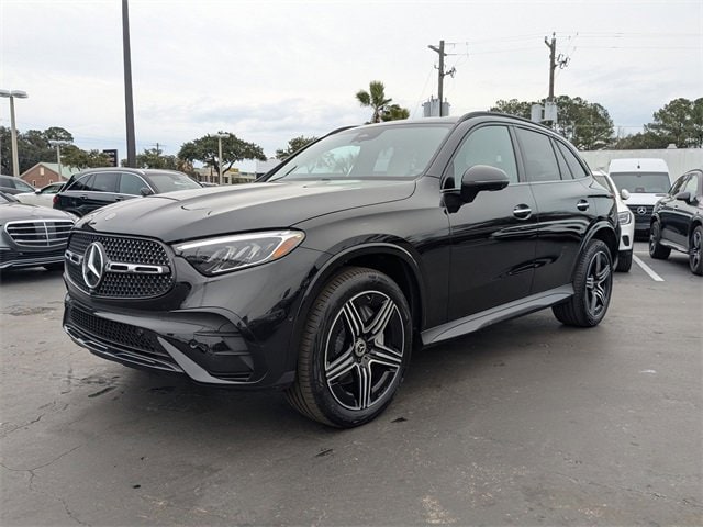 CARFAX One-Owner. Certified. Black 2025 Mercedes-Benz GLC 300 RWD 9-Speed Automatic I4 APPLE CAR PLAY, ANDROID AUTO, USB PORTS, BLUETOOTH, Alloy wheels, AMG® Line, AMG® Line Body Styling, AMG® Line Exterior, AMG® Line Floor Mats, AMG® Line Interior, Black Roof Rails, Burmester® 3D Surround Sound System, Enhanced Ambient Lighting, Exclusive Trim, Flat-Bottom Multifunction Sport Steering Wheel, GUARD 360, High-Gloss Black Elements, Illuminated Door Sills, MB Navigation, MB-Tex Instrument Panel, Night Package, Perforated Brake Discs, Surround View System, Wheel Arch Trim Painted in Body Color, Wheels: 20 AMG® 5-Spoke w/Black Accents.