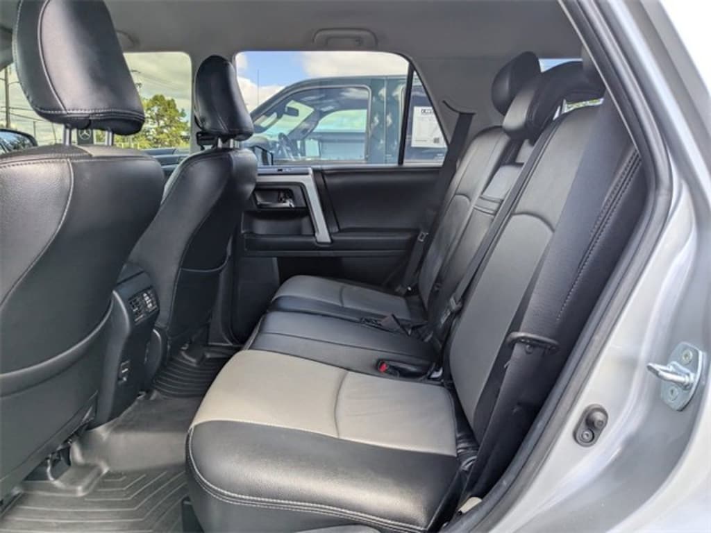 Clean CARFAX. Silver 2019 Toyota 4Runner SR5 RWD 5-Speed Automatic with Overdrive 4.0L V6 SMPI DOHC Black Graphite w/Leather Seat Trim, 17 x 7.0 6-Spoke Alloy Wheels, ABS brakes, Alloy wheels, Electronic Stability Control, Heated door mirrors, Illuminated entry, Low tire pressure warning, Remote keyless entry, Traction control.