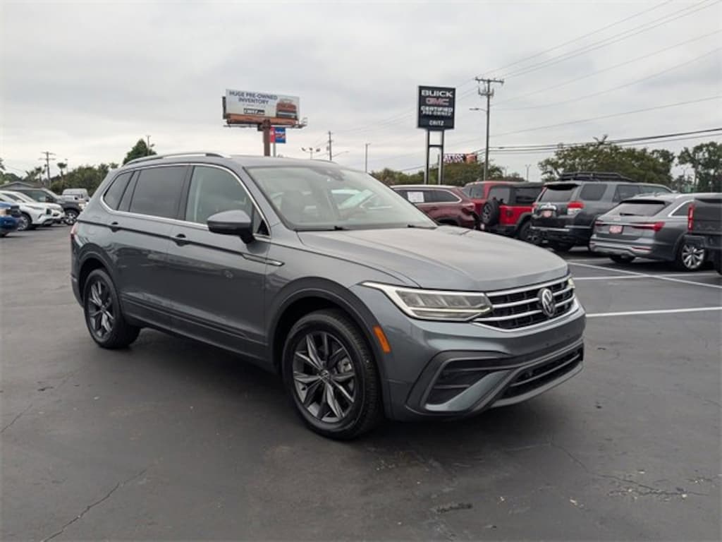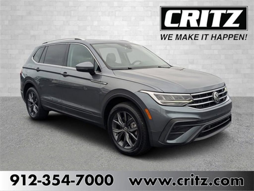 Clean CARFAX. CARFAX One-Owner. Platinum Gray Metallic 2022 Volkswagen Tiguan 2.0T SE FWD 8-Speed Automatic with Tiptronic 2.0L TSI DOHC APPLE CAR PLAY, ANDROID AUTO, USB PORTS, BLUETOOTH, Panoramic Sunroof Package.